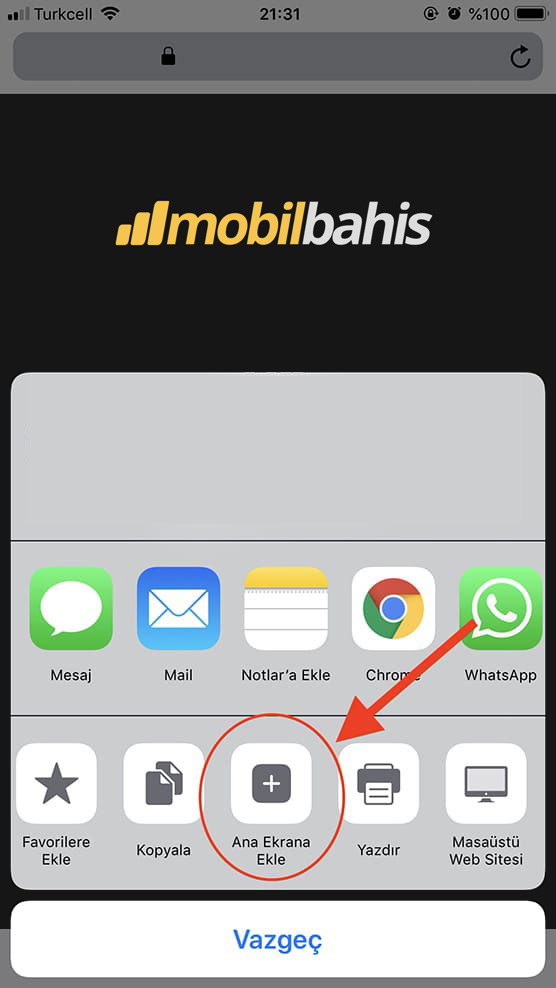 Açılan adreste iOS için "Paylaş" butonuna basın.